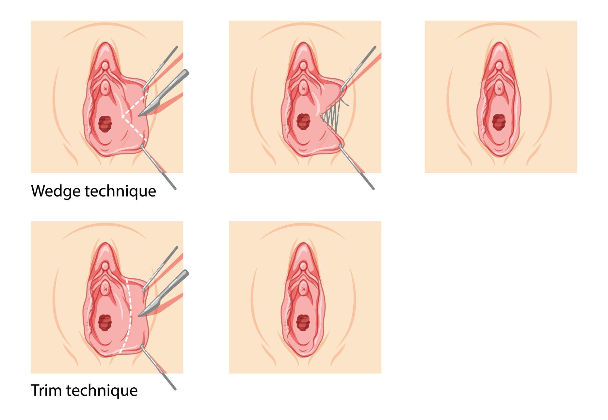 The two primary techniques used in labiaplasty are the trim method and the wedge method. In the trim method, excess tissue is removed from the edge of the labia, resulting in a neater and more symmetrical appearance. The wedge method involves the removal of a triangular section of tissue from the labia, preserving the natural edge and contour.